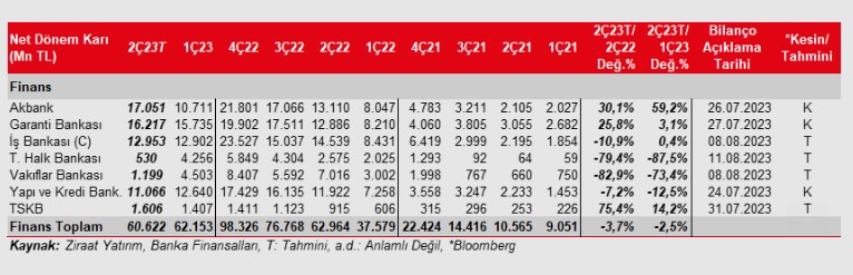 Ziraat Yatırım ikinci çeyrek bilanço beklentileri ve kar tahminleri raporunun detayları şöyle: