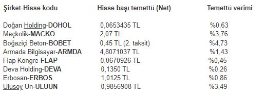 8 ŞİRKET 8 MAYIS PAZARTESİ GÜNÜ TEMETTÜ VERECEK