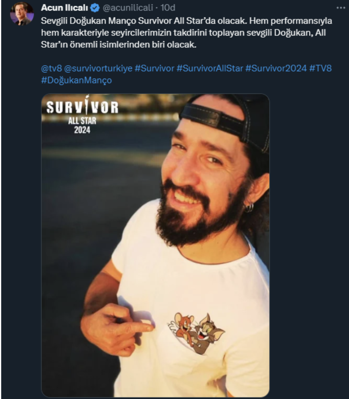 Survivor All Star 2024'ün kadrosunu adım adım şekillendiren Acun Ilıcalı bir ismi daha açıkladı. Usta sanatçı Barış Manço'nun oğlu Doğukan Manço bir kez daha parkurlarda ter dökecek.
