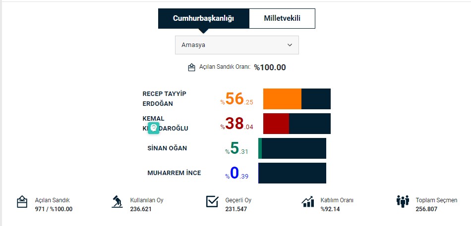 AMASYA BİRİNCİ TUR SEÇİM SONUÇLARI