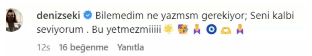 Pembe arkasında kanat detayı olan tulumuyla dikkatleri üzerine çeken Gülşen’e ünlü isimlerden beğeni ve yorum yağdı. O yorumlardan biri de Deniz Seki’ye aitti. Seki, "Bilemedim ne yazmam gerekiyor; Seni kalbi seviyorum. Bu yetmez mi?" yorumunda bulundu.