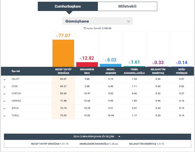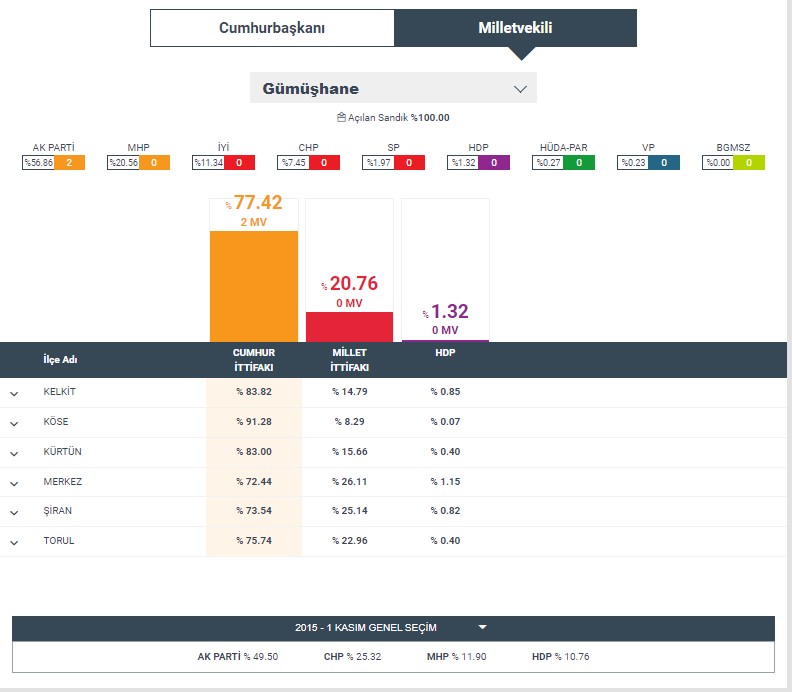 GÜMÜŞHANE SEÇİM SONUÇLARI 2018