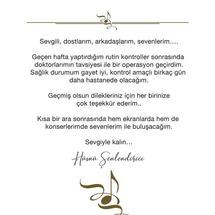 Son sağlık durumunu sosyal medya hesabından sevenleriyle paylaşan Şenlendirici, şu ifadeleri kullandı: