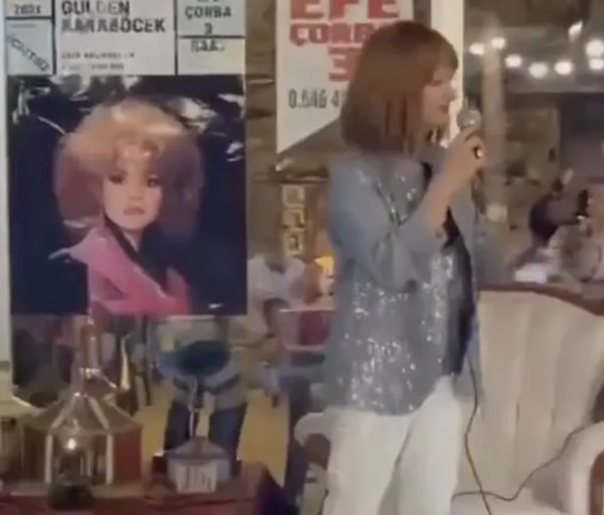 “Sürünüyorum”, “Kırılsın Ellerim” ve "Dilek Taşı" gibi şarkılarla tanınan Gülden Karaböcek çorbacıda sahne alırken görüntülendi.