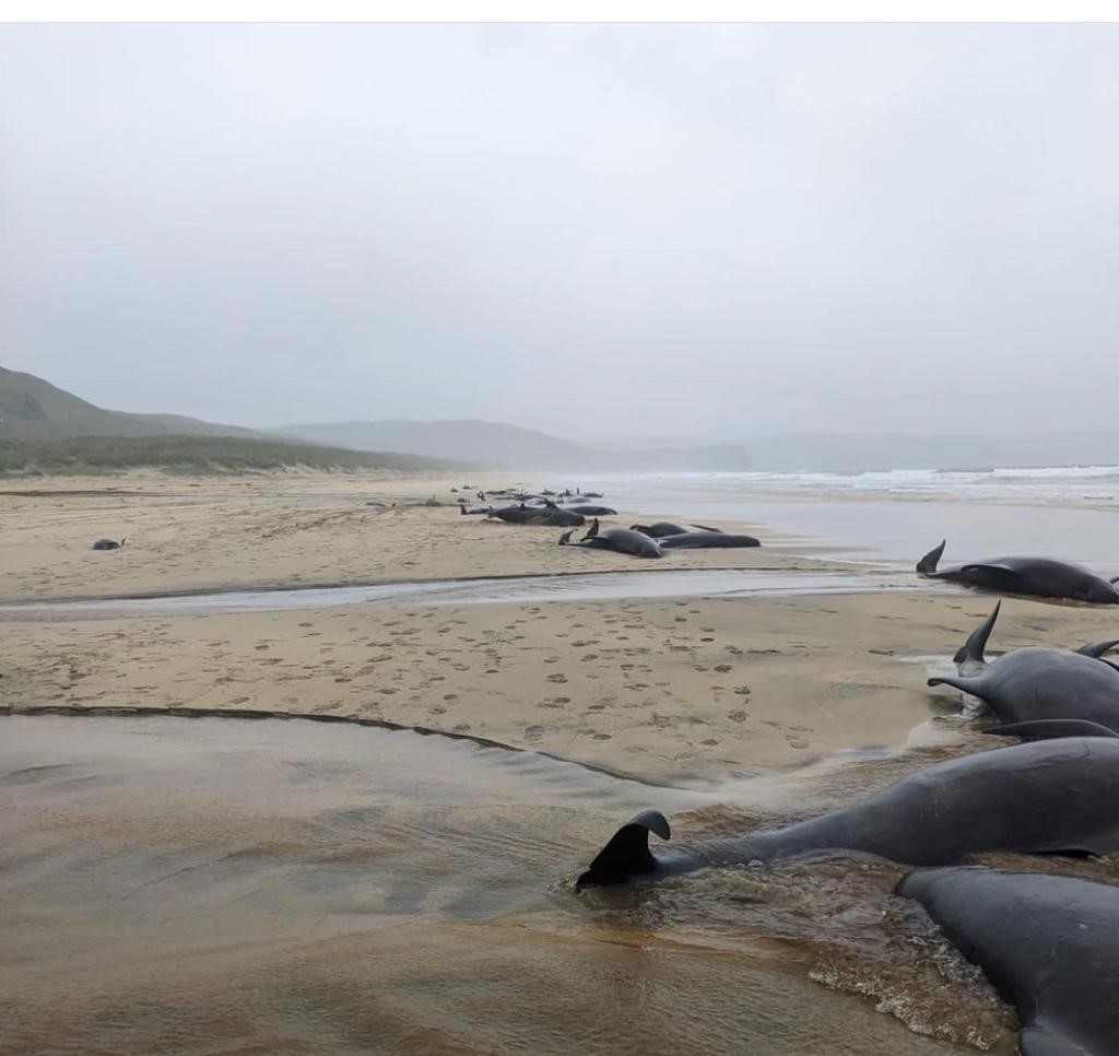 İngiliz Dalgıçlar ve Deniz Hayatı Kurtarma Grubu (BDMLR) tarafından yapılan açıklamada, sürüdeki hamile pilot balinanın doğum esnasında yaşadığı komplikasyon nedeniyle kıyıya vurduğu ve sürünün geri kalanının da güçlü toplumsal bağları nedeniyle onunla birlikte intihar ettiği üzerinde durulduğu ifade edildi.