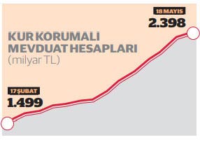 Bankacılık Düzenleme ve Denetleme Kurumu verilerine göre, KKM'deki toplam tutar 2,4 trilyon liraya çıktı. Kur korumalı mevduat dolar cinsinden ise 121 milyar doları aştı. Faiz üst sınırının kaldırılmasından bu yana KKM hesaplarına giriş hızlandı. Son 7 haftada KKM'deki artış 32,6 milyar dolar olarak kaydedildi. KKM uygulaması Aralık 2021'de dolardaki hızlı yükseliş sonrası döviz piyasasının dengelenmesi için devreye sokulmuştu.