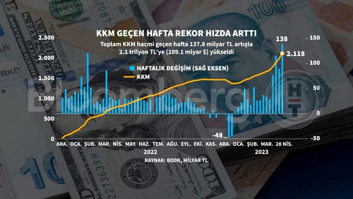 Kur Korumalı Mevduat-KKM'degeçen hafta toplam büyüklük 109,1 milyar dolara ulaşarak yeni rekor seviyeye yükseldi.