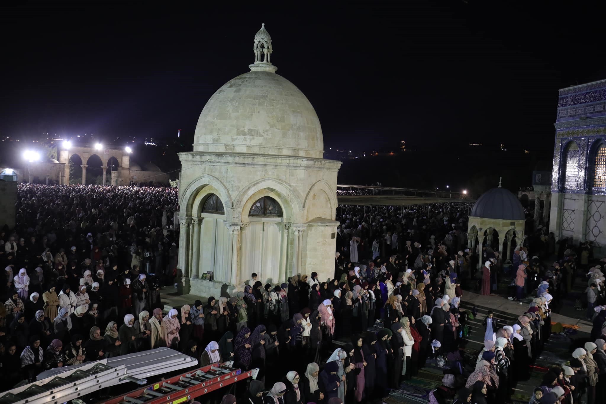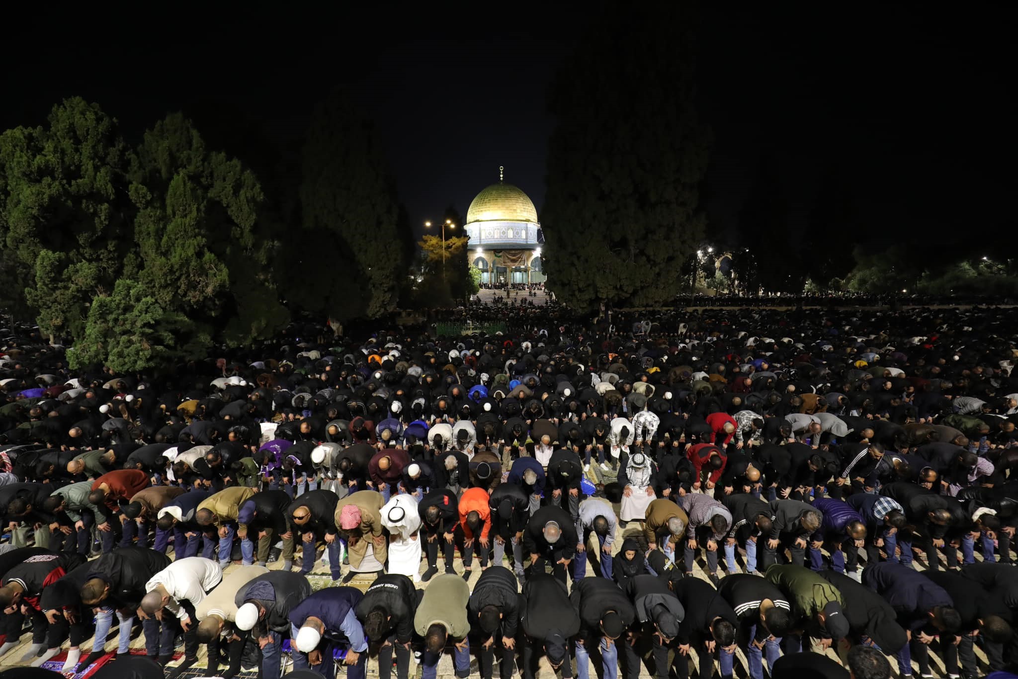 Mescid-i Aksa'da 200 bin Müslüman, Ramazan ayının son cuma gününde yatsı ve teravih namazlarını kıldı.