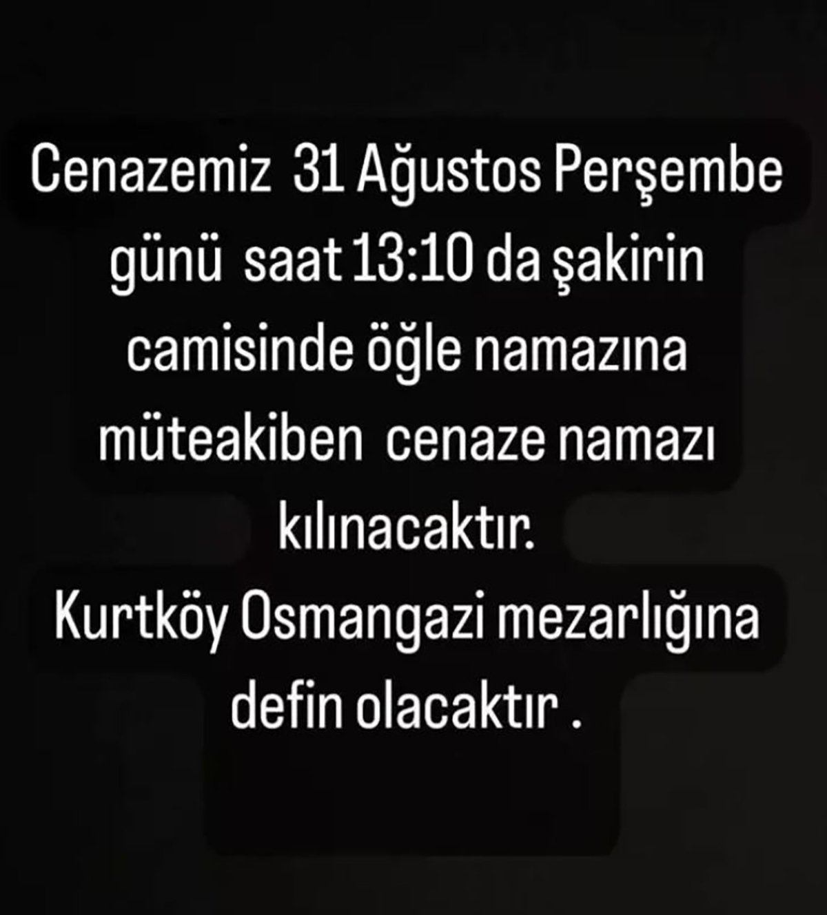 Usta oyuncunun cenazesi 31 Ağustos Perşembe günü Şakirin Camisi'nde öğle vakti kılınacak cenaze namazının ardından Kurtköy Osmangazi Mezarlığına defnedilecek.