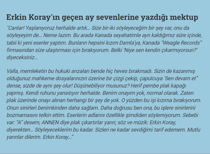 Erkin Koray, müziğiyle bir hayat boyu bizi bize anlatmanın en iyi yolunu aradı.… pic.twitter.com/Kx7Z8V6W1o