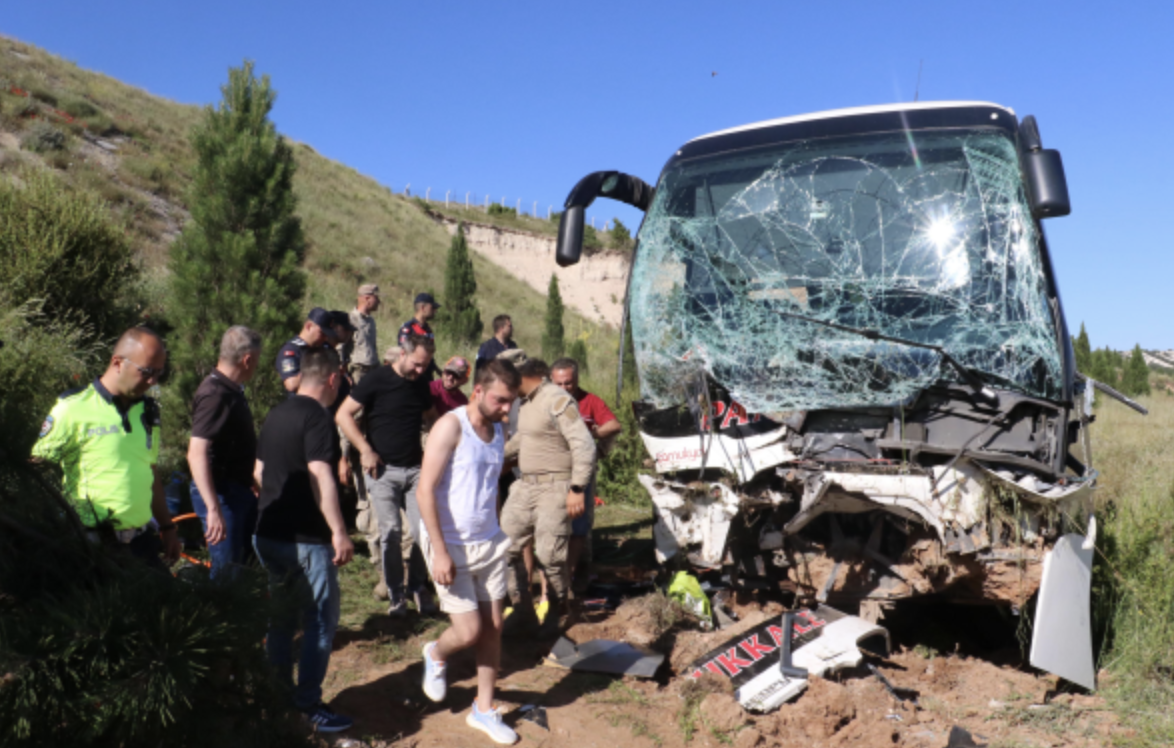 Karayolunda savrulmaya başlayan otobüs, yoldan çıkarak engebeli araziye uçtu. Sabah saatlerinde meydana gelen kazada otobüste bulunan 35 kişi yaralandı. Olay yerine çok sayıda sağlık ve itfaiye ekibi sevk edildi. Trafik polisi tarafından yol trafiğe kısmi olarak trafiğe kapatıldı.
