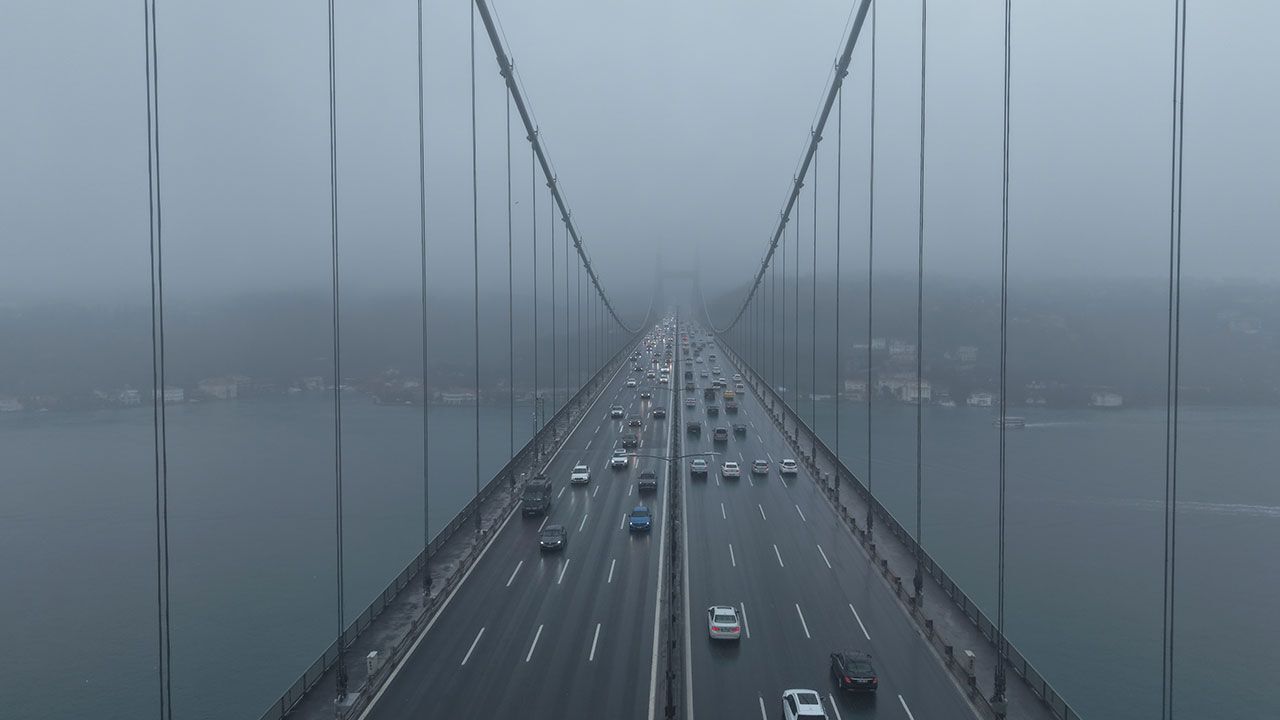 Sabah saatlerinden itibaren etkisini sürdüren sis, 15 Temmuz Şehitler Köprüsü'nde kartpostallık görüntüler oluşturdu. O anlar dron kamerasıyla havadan görüntülendi.