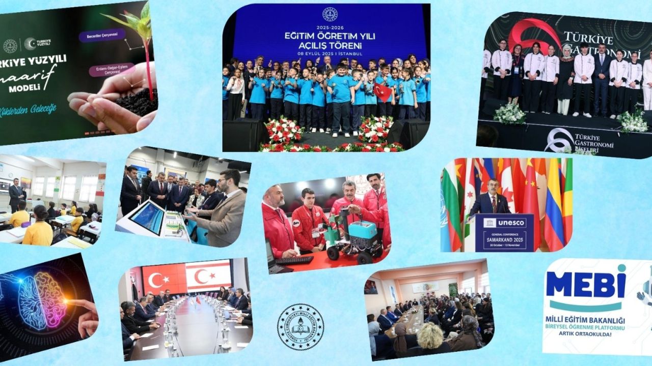 Bakanlıktan yapılan yazılı açıklamaya göre, 2025 yılı itibarıyla gelişen teknolojilerin eğitim sistemine entegre edilmesi başta olmak üzere önemli projeler hayata geçirildi. Bu yılın başında 315 bin 856 öğretmen, 'uzman öğretmen' ve 'başöğretmen' ünvanı aldı. Bakanlık, 2024-2025 eğitim öğretim yılında kademeli olarak başlatılan 'Türkiye Yüzyılı Maarif Modeli'nin öğretim programlarını bu yıl ana sınıfı ve uygulama sınıflarında, ilkokul 1 ile 2, ortaokul 5 ile 6, ortaöğretim hazırlık ve 9 ile 10'uncu sınıflarında uygulamaya devam etti. 'Beceri temelli' yeni müfredatla 'sonuç odaklı ölçme' yerine 'süreç odaklı ölçmeye' de geçiş yapılırken bu kapsamda her dönem sonunda karne yerine okul öncesi eğitimde 'beceri edinim raporu', ilkokullarda ise 'gelişim raporu' verilmesi uygulamasına geçildi.