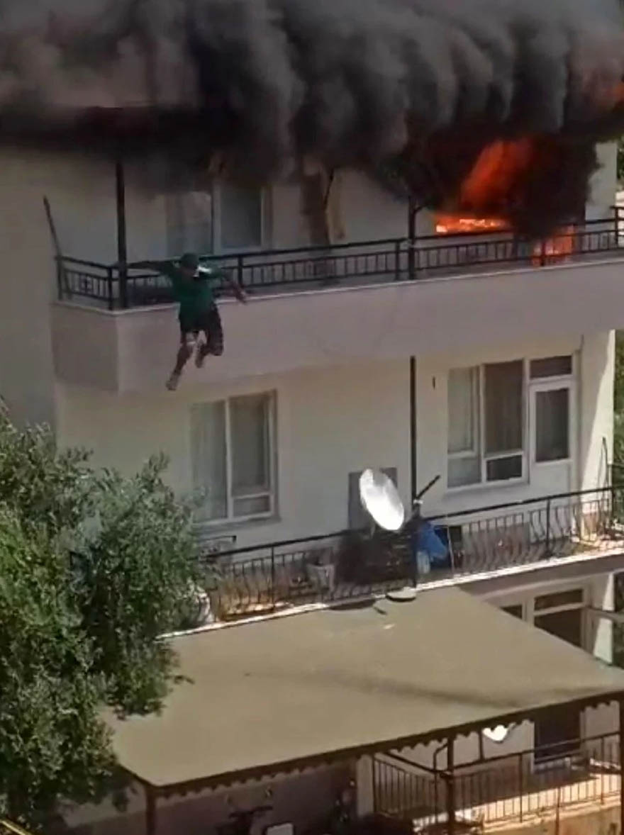 Daire alevler içinde kalırken, Ertuğrul G. balkon korkuluklarına oturup bağırmaya başladı. Bir kişinin cep telefonu kamerası ile kaydettiği o anlarda Ertuğrul G., bulunduğu balkondan atlayarak gözden kayboldu.