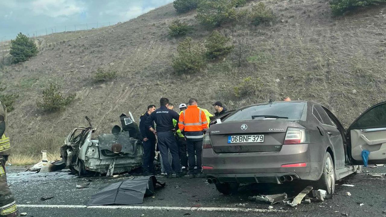 Ankara Çevre Yolu'nda iki otomobilin çarpıştığı kazada 5 kişi hayatını kaybetti.