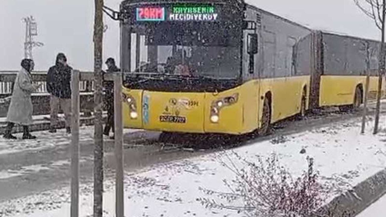 Meteoroloji Genel Müdürlüğü’nün uyarılarının ardından İstanbul’da kar yağışı başladı. Arnavutköy’ de yollar beyaza büründü. İETT otobüsü yolda kaldı. Yolcular mağdur olurken, uzun araç kuyruğu oluştu.