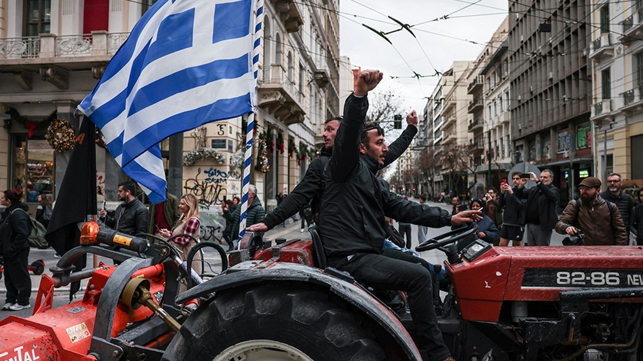 Yunanistan’da çiftçilerin hükümetin tarım politikalarına yönelik protestoları sürüyor. Traktörlerle başkent Atina sokaklarına çıkan göstericiler, parlamento binasının önündeki Sintagma Meydanı’nda toplandı. Kamu ve özel sektör çalışanları, öğrenci dernekleri ve çeşitli sosyal kuruluşların üyeleri de çiftçilere destek vermek amacıyla meydandaki kalabalığa katıldı. Protesto sırasında göstericiler "İşçiler ve çiftçiler, tek ses, tek yumruk" sloganları atarken, bazı kişiler de "Tarım ölüyor" ve "Hayvancılık ölüyor" yazılı pankartlar taşıdı. Birçok protestocu taleplerini gıda güvenliği ve ulusal yeterlilik mücadelesinin bir parçası olarak nitelendirdi ve yerli tarımın gerilemesinin Yunanistan’ın kendi gıda üretimini sürdürebilme kapasitesi üzerinde uzun vadeli sonuçlar doğuracağı uyarısında bulundu. Çiftçiler, gece boyunca parlamento binası önünde kalmayı planladıklarını açıkladı.