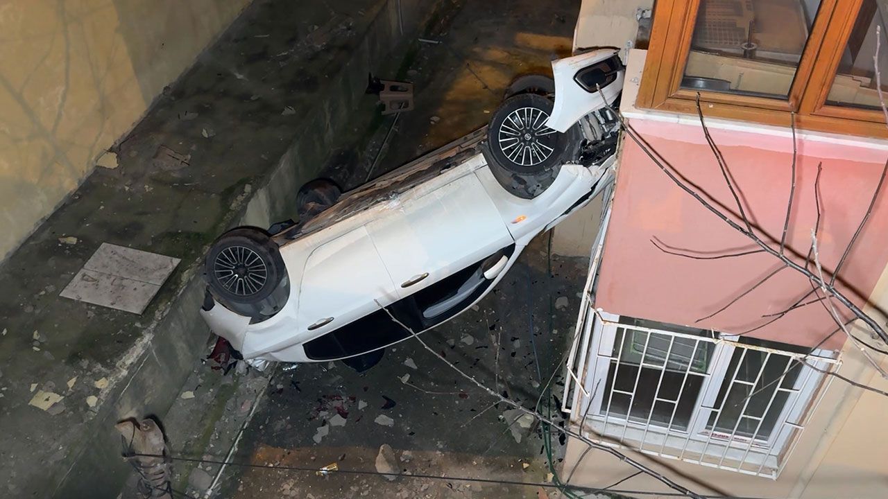 İstanbul Avcılar'da sürücüsünün direksiyon hakimiyetini kaybettiği otomobil rampadan hızla inerek duvara çarptı. Ardından da 8 metre yükseklikten bina boşluğuna düştü. Yaralanan sürücü ambulansla hastaneye kaldırıldı.