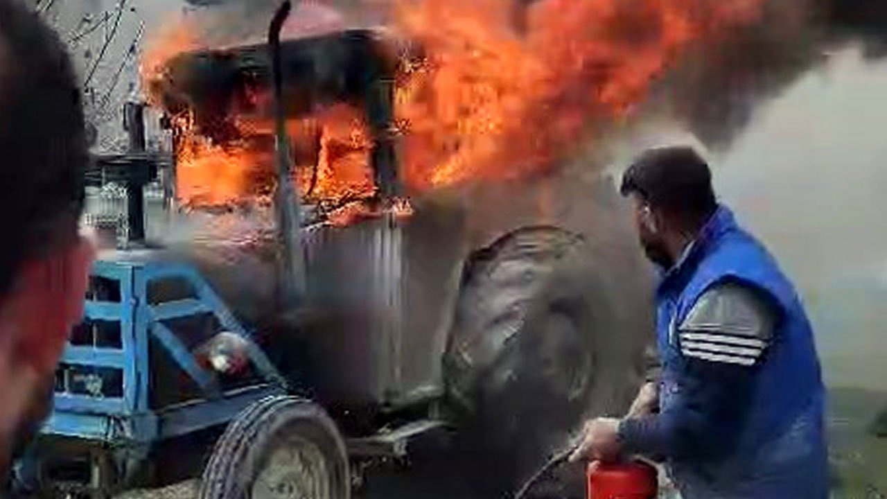 Alevler traktörün tamamını kısa sürede sardı. Çevredekiler söndürme tüpleriyle yangına müdahale etti. İtfaiyeye haber verilirken, traktör yangın sonrası kısa sürede metal yığınına döndü. Yangını söndüren itfaiye traktörde soğutma çalışması yaparken, yangının çıkış nedeni araştırılıyor.