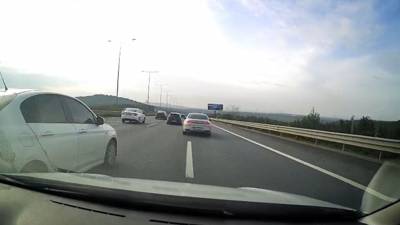 Olay, Beykoz sınırlarında bulunan Kuzey Marmara Otoyolu TEM bağlantı yolunda meydana geldi. Görüntülere göre, trafikte makas atarak ilerleyen 34 FLC 606 plakalı otomobil sürücüsü, en sağ şeritte kendi halinde seyreden aracı sıkıştırarak emniyet şeridine kadar itti. Yaklaşık 130 kilometre hızla seyir halinde olan sürücü büyük tehlike yaşadı.