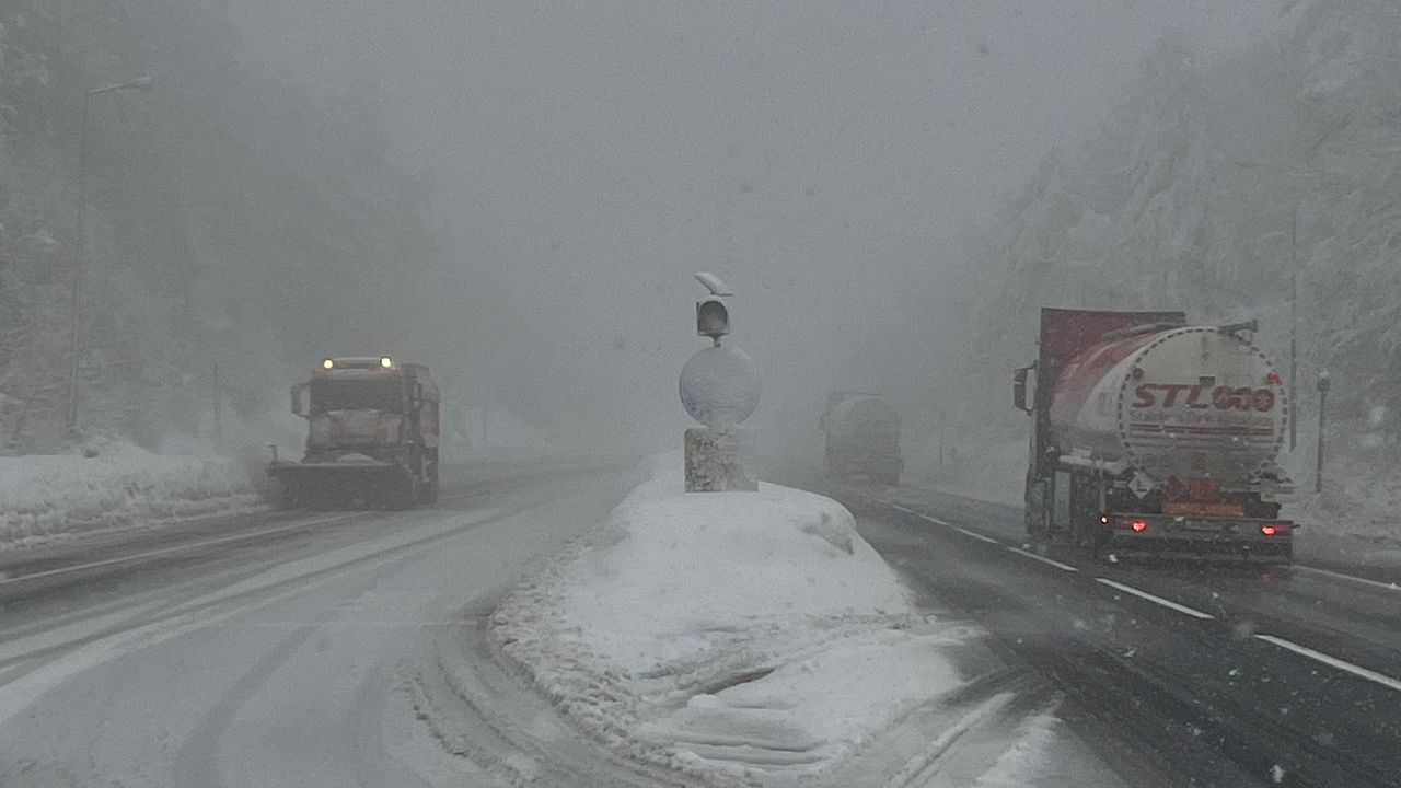 Bolu Dağı'nda sabah saatlerinden itibaren hafif kar yağışı, aralıklarla etkili oldu. D-100 kara yolu geçişinin Karanlıkdere ve Seymenler mevkilerinde sis etkili olurken, görüş mesafesi yaklaşık 30 metreye kadar düştü. Ulaşımda aksama yaşanmazken, Karayolları ekipleri yol güzergahlarında çalışmalarını sürdürüyor. D-100 kara yolu ile Anadolu Otoyolu geçişinde Ankara ve İstanbul yönünde sürücüler, sorunsuz şekilde yollarına devam ediyor.