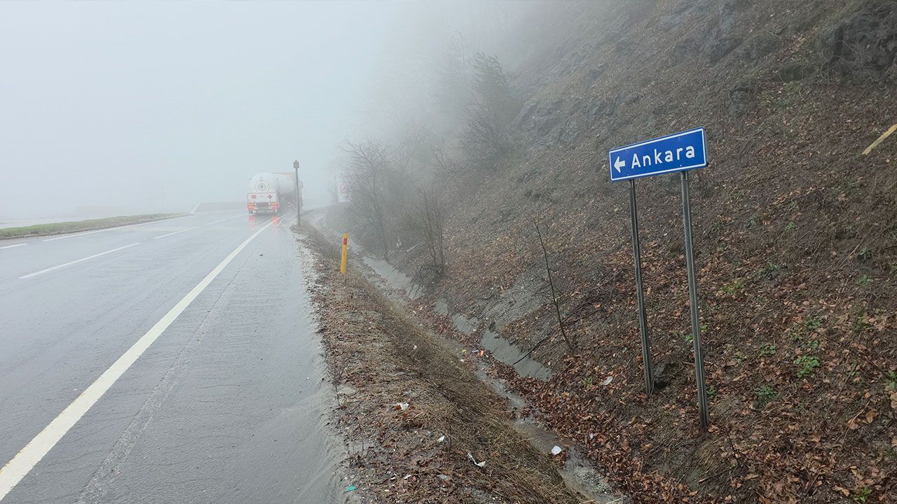 Türkiye'nin önemli geçiş güzergahlarından D-100 Karayolu'nun Bolu Dağı geçişinde yağış ve yoğun sis etkili oluyor.