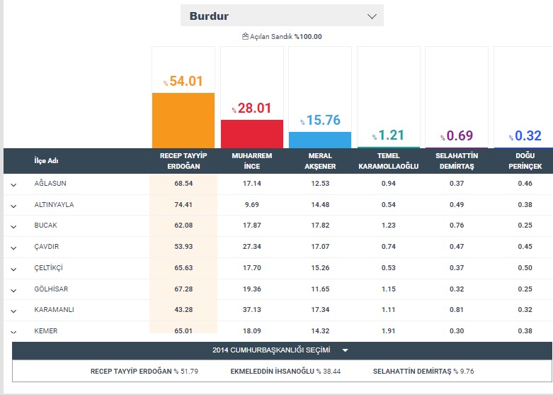BURDUR CUMHURBAŞKANLIĞI SEÇİM SONUÇLARI 2018 CUMHUR İTTİFAKI VE MİLLET İTTİFAKI OY ORANLARI