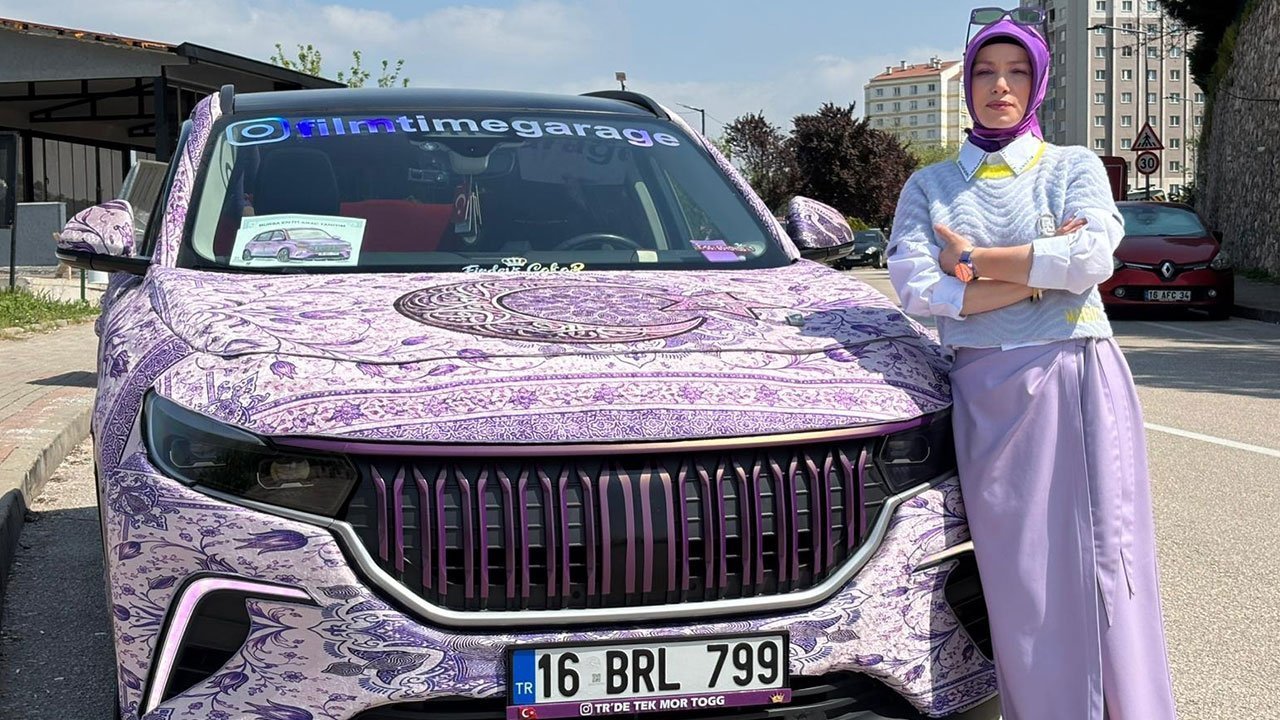 Bursa’da yaşayan ve 10 yıldır hayatının her alanında mor rengi kullanmayı tercih eden Firdevs Çakar (41), 1 yıl önce aldığı Togg marka aracını da sıra dışı yöntemle dönüştürdü.