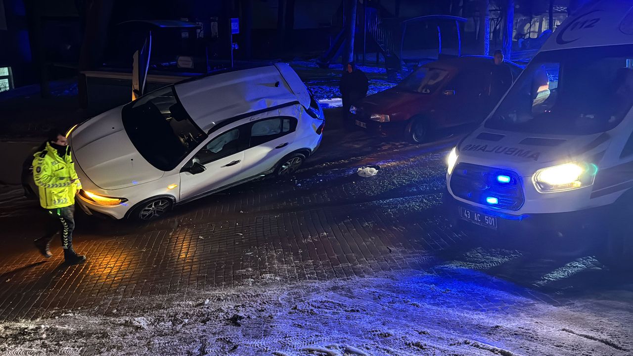 Kütahya'da buzlanma nedeniyle kontrolden çıkan otomobil, kayarak park halindeki bir aracın üzerine çıktı. Kazada 2 kişi hafif şekilde yaralandı.