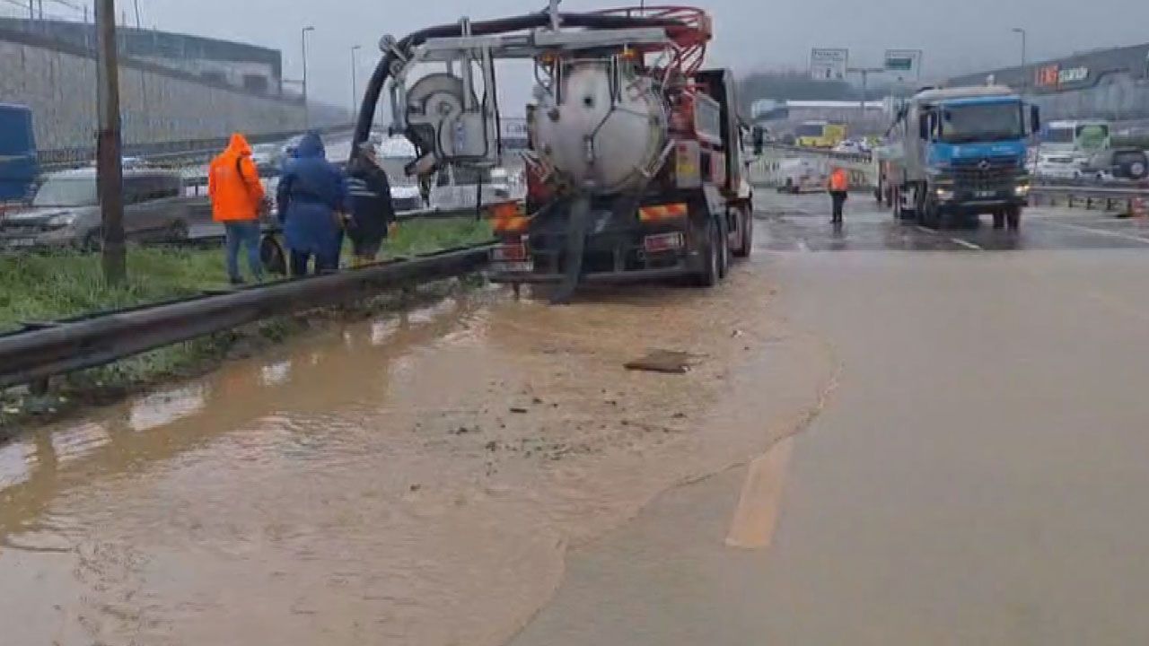İstanbul Çekmeköy'de yağışın ardından yola taşan dere nedeniyle Şile Yolu Kadıköy istikameti trafiğe kapatıldı.