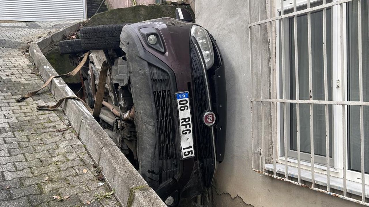 Üsküdar'da yokuş aşağı park halindeyken vitesi boşta kalan araç kontrolden çıkarak bir evin bahçesine düştü. Olayda yaralanan olmazken, kaza nedeniyle araçta büyük çapta maddi hasar meydana geldi.