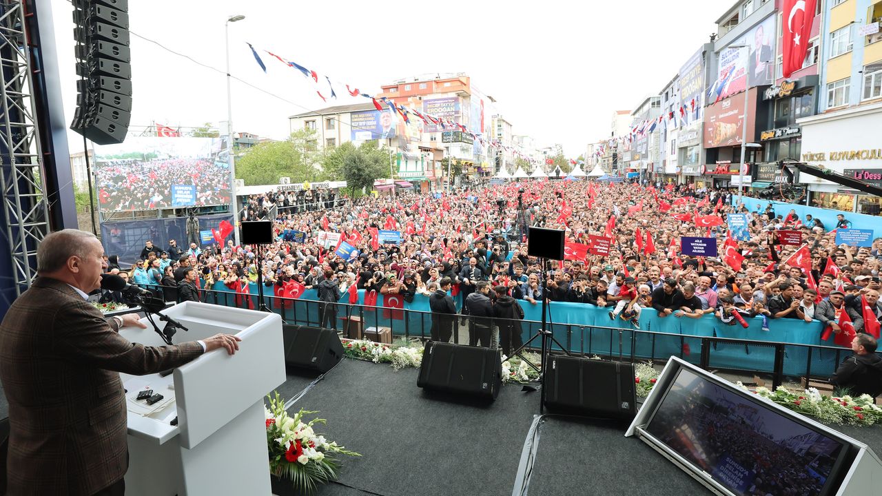 Cumhurbaşkanı Erdoğan, "Fakat muhalefetin ve marjinal örgütlerin tezviratlarına prim verilirse neticede kaybeden yine biz oluruz. İnanıyorum ki Sultanbeyli burada da örnek bir duruş sergileyecektir. Sadece Sultanbeyli'den değil, tüm İstanbul'dan yapıcı tavır bekliyoruz. Kardeşlerim, buna özellikle şunun için söylüyorum. Yıllarca projelerimize 'rantsal dönüşüm' diyerek çamur attılar. İşin bir yanından tutmak yerine vatandaşı kışkırttılar, çabalarımızı sabote etmeye kalktılar. Peki sonra ne oldu? Olan maalesef millete oldu. Bizim yüreğimiz yandı. 'Rantsal dönüşüm' iftirasıyla projelerimize kara çalanların hiçbiri, 6 Şubat depremlerinde ortalıkta yoktur. Bir iki fotoğraf çektirdiler, sonra sırra kadem bastılar. Ama biz, hamdolsun, tüm kapasitemizle deprem bölgesindeydik. Halen 3 bin 481 şantiyemizde oradayız. Şehirlerimizi tekrar ayağa kaldırana kadar da, inşallah, oralardan ayrılmayacağız. Geçen ay 304 bininci yuvamızın anahtarlarını teslim ettik. Önümüzdeki ay, 350 bininci konutumuzun kurasını çekiyoruz. Yılbaşına kadar toplam 453 bin bağımsız bölümü, hak sahibi ailelerimize teslim etmek için gece gündüz çalışıyoruz. 'Bedava ev vereceğiz' diyerek meydanlarda ahkam kesenleri ise bir daha bölgede gören, duyan olmadı. İzmir'de 'TOKİ'den bile iyi olacak' iddiasıyla başlattıkları projede de sonuç büyük bir hüsran oldu. Binlerce vatandaşın parasını aldılar, insanımızı boş yere umutlandırdılar, sonra da milleti dolandırıp yüzüstü bıraktılar. Şimdi mahkemede bunların hesabını veriyorlar" ifadelerini kullandı.