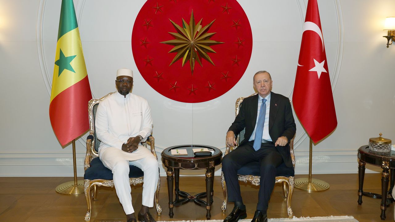 Cumhurbaşkanı Recep Tayyip Erdoğan, Atatürk Havalimanı Devlet Konukevi'nde Senegal Başbakanı Ousmane Sonko'yu kabul etti. İHA