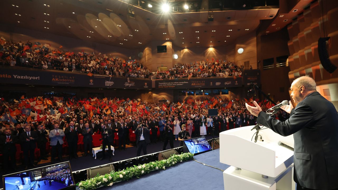 Cumhurbaşkanı Erdoğan, "Teşkilat Akademimize öncülük eden, bu kapsamlı programı dört ay süresince en verimli şekilde uygulayan Genel Merkez Araştırma Geliştirme ve Eğitim Başkanlığımızı yürekten tebrik ediyorum. Aynı şekilde, ‘Bu Senin Hikayen’ temasıyla ülkemizin dört bir yanında düzenlediğimiz Teşkilat Akademilerine katılan, emek veren, katkı sunan her bir dava arkadaşıma canı gönülden şükranlarımı iletiyorum. Hatırlarsanız, eğitimlerimizin açılışını Ankara'da, Genel Merkezimizde, Liderlik Okulu'nda yapmıştık. O gün ortaya koyduğumuz vizyon, bu hareketin nereden nereye geldiğinin ve hangi menzile yürüyeceğinin adeta yol haritası niteliğindeydi. Bugün ise İstanbul'da 80. il eğitim programımızı sizlerle birlikte 86 milyonun huzurunda gerçekleştiriyoruz. Akademide alınan eğitimlerin, aktarılan tecrübelerin partimiz, ülkemiz, milletimiz için hayırlara vesile olmasını temenni ediyorum. Türkiye Yüzyılı idealimizi kuvveden fiile çıkaracak AK kadroların tüm neferlerine buradan sevgi ve saygılarımı gönderiyorum. Kıymetli yol arkadaşlarım, öncelikle şu hususu tekrar ifade etmek istiyorum. Bizler ortak bir ideal etrafında kenetlenmiş dava hareketiyiz. 86 milyonun kaderini kendi kaderimiz gören bir siyasi kadroyuz. Her birimiz hangi mukaddes ideallere talip olduğumuzun idrakindeyiz. 24 yıl boyunca milletimizin menfaatlerini şahsi çıkarlarımızın hep önünde ve üstünde tuttuk. Bugüne kadar nice engelle karşılaştık, nice badireler atlattık, nice saldırıya göğüs gerdik, nice imtihan günlerinden geçtik" şeklinde konuştu.