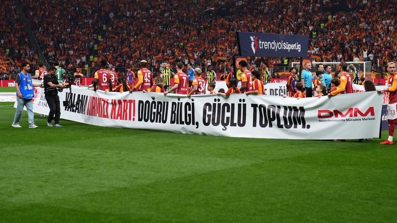 İletişim Başkanı Burhanettin Duran, sosyal medya hesabından yaptığı paylaşımda, "Sahadaki rekabeti anlamlı bir farkındalıkla taçlandıran ülkemizin iki köklü spor kulübü Galatasaray Spor Kulübü’nü ve Fenerbahçe Spor Kulübü’nü yürekten teşekkür ediyorum. Bugün yeşil sahada açılan bu pankartlar, sadece birer slogan değil; özellikle dijital dünyadaki güvenliğimiz için de önemli birer mesaj. Etkileşim tuzağına düşmeden, bilginin kaynağını sorgulayarak; dezenformasyona hep birlikte 'dur' diyelim. Unutmayalım ki; gerçeğin peşinde, manipülasyondan uzak bir gelecek için hepimize görev düşüyor" ifadelerine yer verdi.