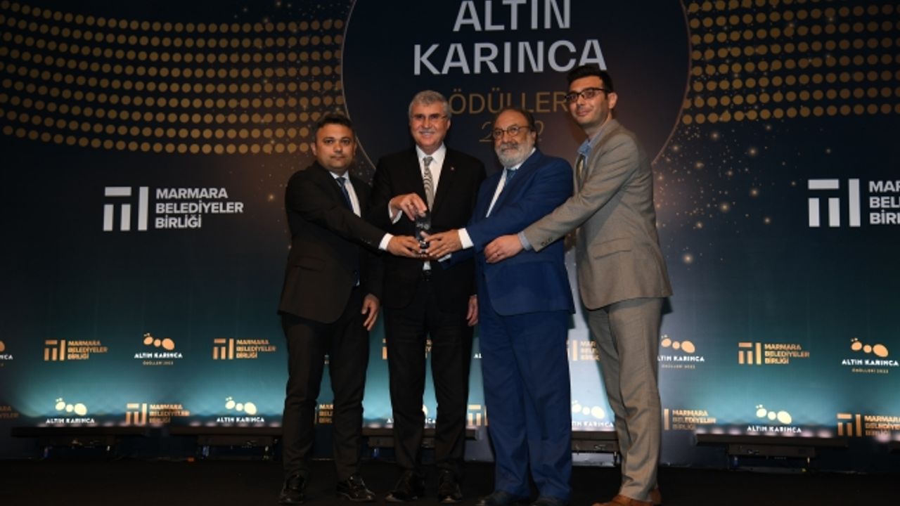 Belediyelerin şehirlerdeki yaşam kalitesini artıran projelerini teşvik etmek ve yaygınlaştırmak amacıyla Marmara Belediyeler Birliği’nin düzenlendiği Altın Karınca Ödülleri, Hilton İstanbul Bosphorus Hotel’de gerçekleşen törenle sahiplerini buldu. Marmara Bölgesi’ndeki belediyelerin projeleri Altın Karınca’da “İdari Kategoriler” ve “Proje Kategorileri” olmak üzere iki ana kategori altında değerlendirildi. Kadıköy Belediyesi Proje Kategorileri başlığında bulunan Akıllı Şehir Uygulamaları’nda “Dijital Kadıköy” projesiyle ödül aldı. Ödülü Kadıköy Belediyesi Bilgi İşlem Müdürü Mahmut Dal, mühendis Ozan Neli ve Kadıköy Belediye Meclis Üyesi Mustafa Günalp’e Sakarya Büyükşehir Belediye Başkanı Ekrem Yüce verdi.