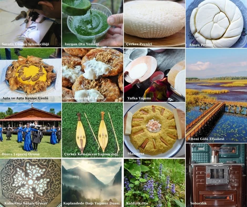 Kültür ve Turizm Bakanlığı Yaşayan Miras ve Kültürel Etkinlikler Genel Müdürlüğü tarafından yürütülen envanter çalışmaları kapsamında, Düzce İl Tespit Komisyonu’nun sunduğu teklifler karara bağlandı. Yapılan değerlendirmeler sonucunda; Kaplan Dede Dağı Yağmur Duası, Kabartma Sanatı (Gravür), Savatlı Gümüş İşlemeciliği, Çerkez Kemençesi Yapımcılığı, Aşta ve Aşta Kesme Usulü ile Efteni Gölü Efsanesi gibi önemli unsurlar listenin başında yer aldı.