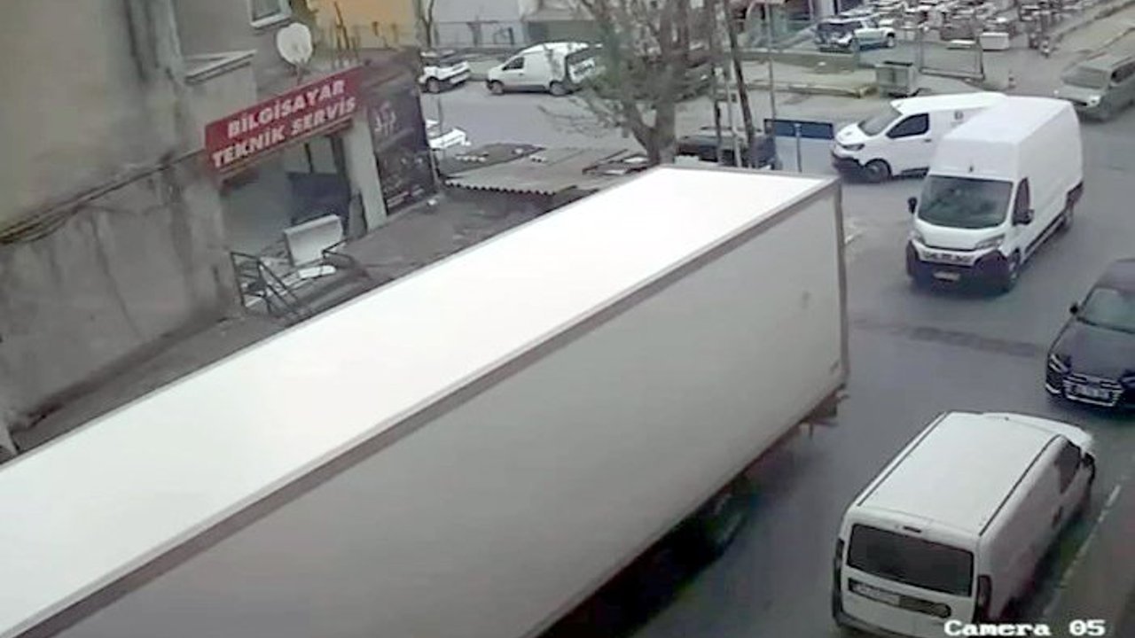 Yakuplu Mahallesi'nde dün öğle saatlerinde iddiaya göre bir TIR şoförü araçtan inerken el frenini çekmeyi unuttu. Araç geriye doğru kaymaya başladı. Şoför, aracın hareketlendiğini görünce koşup, müdahale etmek istedi. Ancak, aracın hızına yetişemedi. TIR'ın dorsesi, arkasındaki kapalı kasa minibüse çarptı. Şans eseri yaralanan kimsenin olmadığı kaza, bir iş yerinin güvenlik kamerasına yansıdı.
