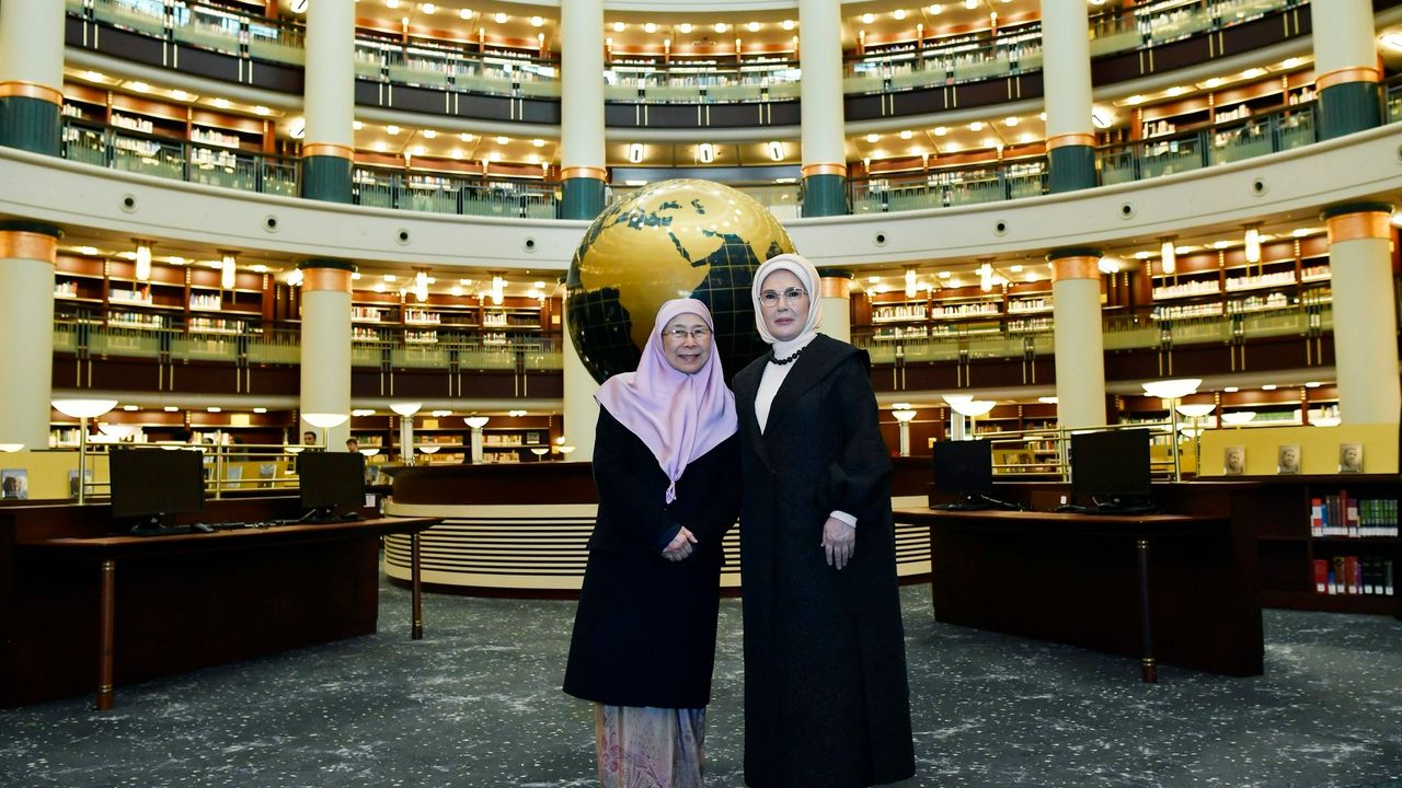 Emine Erdoğan, Malezya Başbakanı Enver İbrahim'in eşi Wan Azizah İsmail ile Ankara'da bir araya geldi. Emine Erdoğan, kütüphane girişinde karşıladığı Wan Azizah İsmail ile ilk olarak Cihannüma Salonu'na geçti. Burada hatıra fotoğrafı çektiren lider eşleri, Malezya Kitaplığı'ndaki eserleri inceledi. Emine Erdoğan, Wan Azizah İsmail'e Mevlana'nın 'Mesnevi' eserinin Malayca baskısı ile Cumhurbaşkanlığı İletişim Başkanlığınca hazırlanan 'Türkiye' kitaplarını hediye etti. Lider eşleri, Malezya'nın Ankara Büyükelçiliği tarafından armağan edilen 11 kitabı da yakından inceledi. Ziyaret sırasında Wan Azizah İsmail, Emine Erdoğan'a kütüphaneyi çok beğendiğini ifade etti.