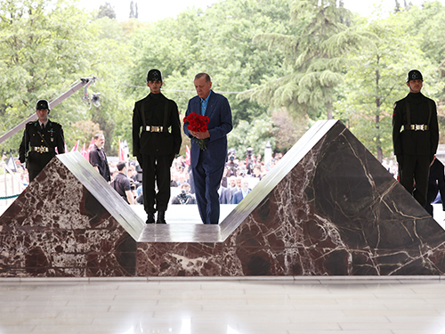 Cumhurbaşkanı Recep Tayyip Erdoğan’ın anıta çelenk bırakmasıyla başlayan anma töreninde saygı duruşunda bulunuldu. Cumhurbaşkanı Erdoğan daha sonra anıta kırmızı karanfil bıraktı. Programda daha sonra Kuran-ı Kerim okunarak dualar edildi.