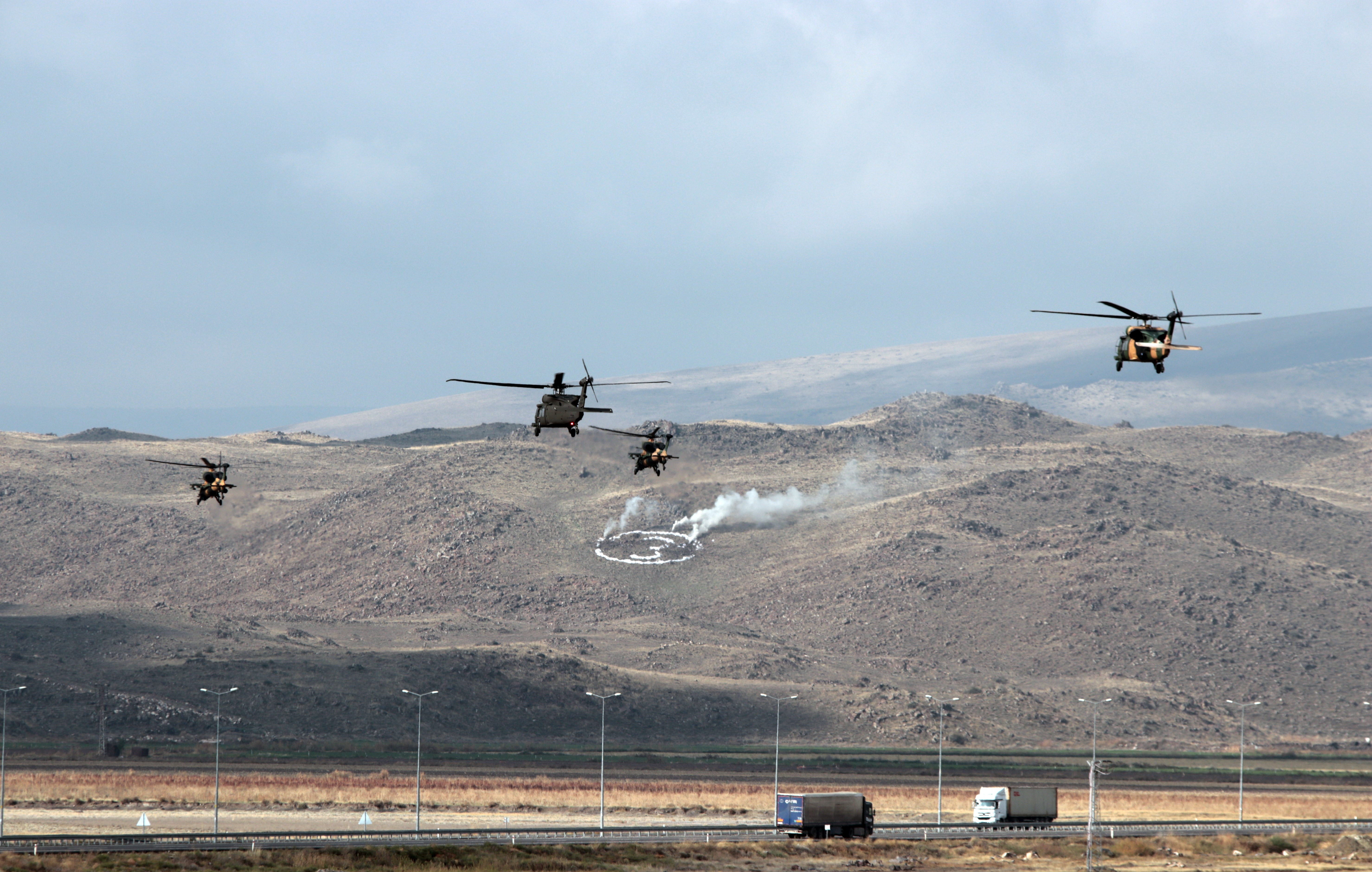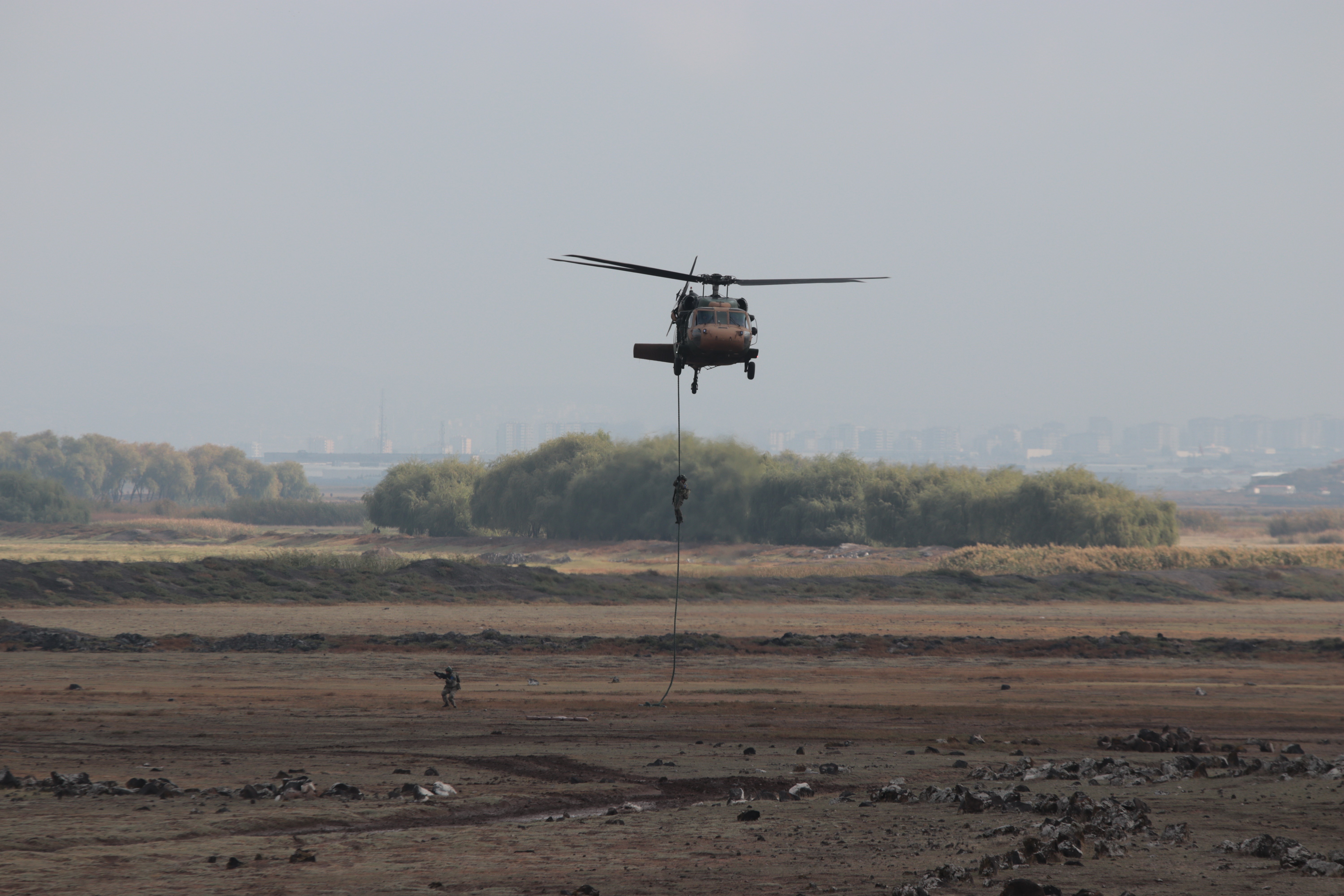 Tatbikatta komandolar tarafından teröristlerden arındırılan bölge Silahlı İnsansız Hava Aracı (SİHA) ile vurulurken, helikopterle düşman bölgesine indirilen toplarla da tepelerdeki hedefler imha edildi.