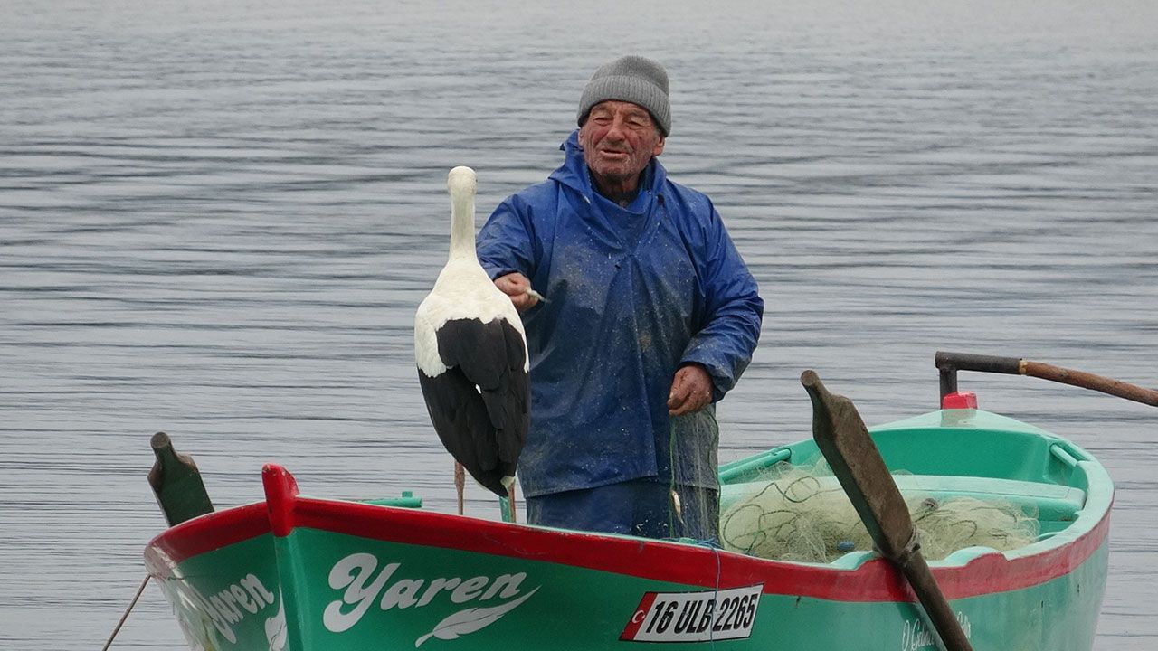 15 yıldır her göç zamanı gözünü gökyüzünden alamayan ve bu yıl da dostuna kavuşan balıkçı Adem Yılmaz da dostu Yaren'i besleyerek özlem gideriyor.