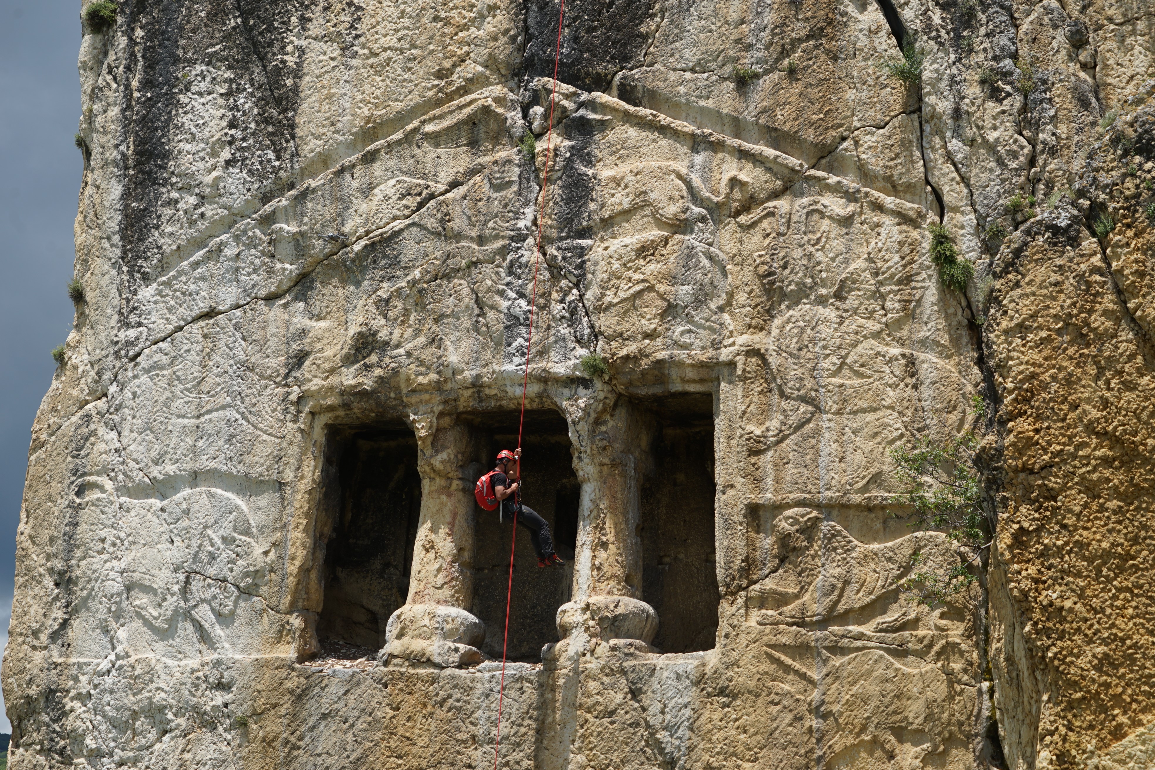 Bu çerçevede Taşköprü ilçesinde rota belirleme çalışmaları yapan ekip, Donalar köyünde bulunan ve birçok medeniyete ait üzerinde hayvan figürleri bulundurması sebebiyle Türkiye’de tek olma özelliği taşıyan kaya mezarını inceledi. Kastamonu Üniversitesi Turizm Fakültesi Öğretim Görevlisi Hikmet Haberal’ın liderliğinde, Erzurum’un İspir Belediyesi kültür turizm elçisi Bülent Erkan, Artvin’in Yusufeli Dağcılık ve Doğa Sporları Kulübü Başkanı Emin Bülbül ile Yusufeli Dağcılık ve Doğa Sporları Kulübü Sporcusu Erkan Akyürek, kaya mezarının üzerine tırmanarak ip yardımıyla kaya mezarlarının içerisine giriş yaptı.