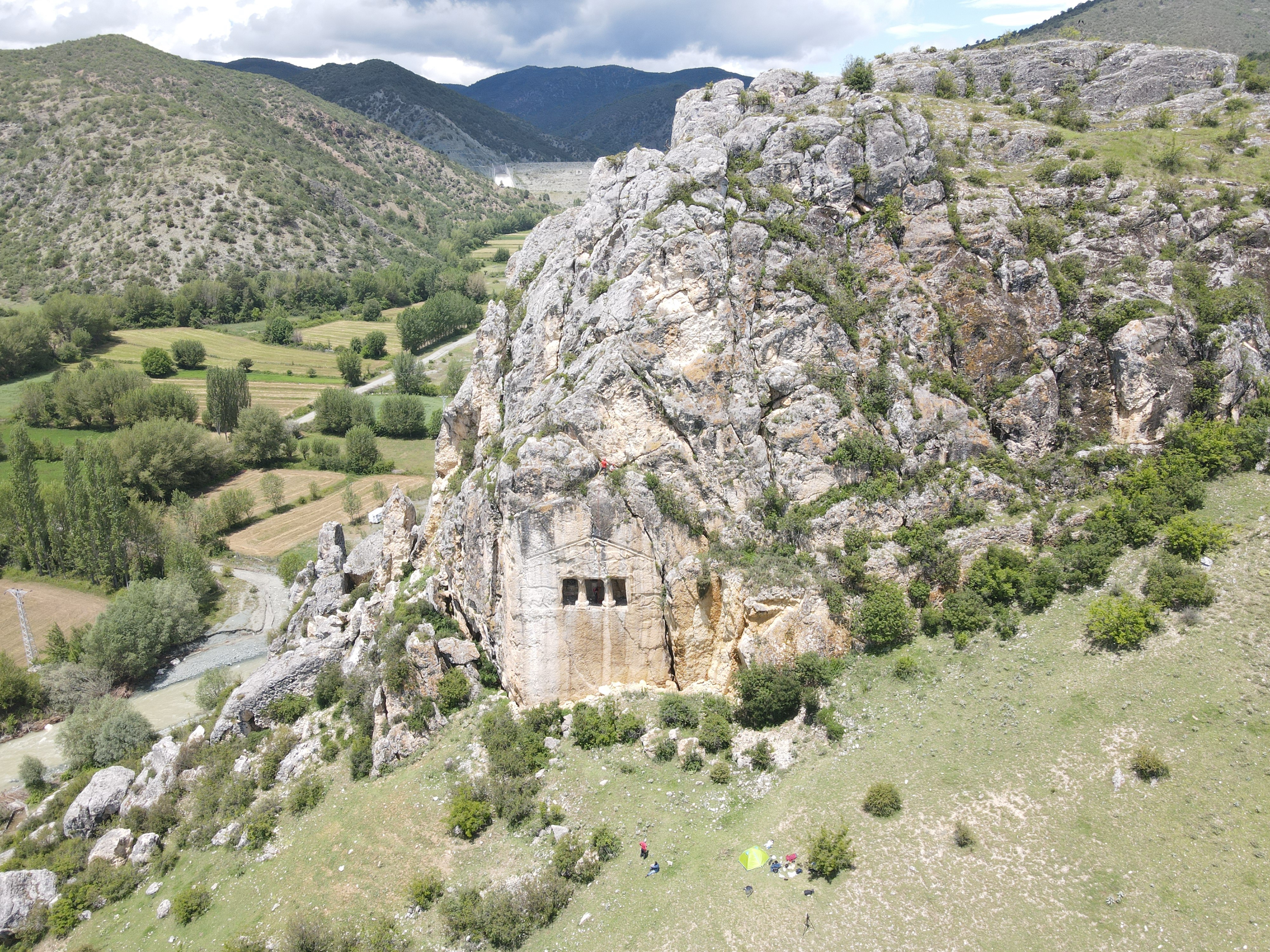 Donalar Kaya Mezarı'nın 2 bin 700 yıllık bir tarihe sahip olduğunu anlatan Gültekin, “Donalar Kaya Mezarı, milattan önce 700. yüzyıldan kalmıştır. Takriben 2 bin 700 yıllıktır. Anadolu’da tek gösteriliyor. Sebebi ise Roma’nın kartalı, aslan ile Herkül’ün Helenistik dönemden kalma resimleri, griffon ile kanatlı aslanların resimleri görülüyor. Tamamlanmamış tek boynuzlu atı da görebiliyoruz. Boğa, aslan gibi birçok hayvan figürlerini görebiliyoruz. Birçok medeniyetten üzerinde izler taşıdığı için Anadolu’da tek gösteriliyor. Ama maalesef 2 bin 700 yıllık kaya mezarının küresel ısınma yüzünden yüzeyi son 30 yıldır asit yağmurları sebebiyle eriyor. Bu konuyla ilgili yazışmalarımız var. Devletimizden bu konuda bir yardım bekliyoruz. Bunun dışında Urgancı, Bademci, Aygır ve Akseki gibi köylerimizde kaya mezarları bulunuyor. İnanılmaz bir Pompoipolisin dışında bir Paflagonya’nın yerel krallıklarından kalma destinasyonlar mevcut. Kaya mezarının üst tarafında bir tünel var, merdiven ile iniliyor. Üstünde yine bir Osmanlı hamamı bulunuyor. Burası aslında bize bir yerleşim bölgesi olduğunu gösteriyor. Ön tarafında ise halen tuğla kırıkları ve küp parçaları fazlasıyla bulunuyor. Bu bölgede bir yerleşim alanı olduğunu söyleyebiliriz” diye konuştu.