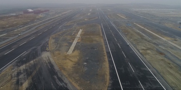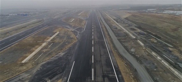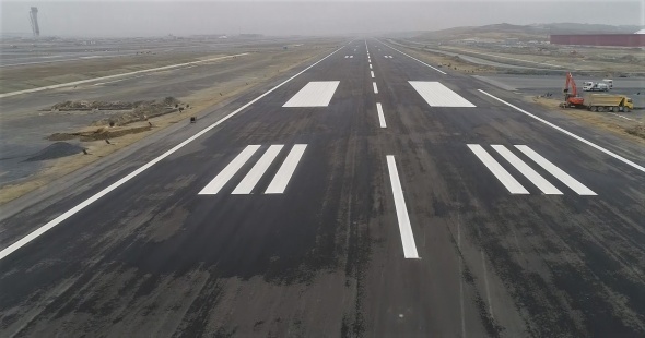 3. Havalimanı inşaattın yüzde 80`i biterken, uçak inişleri için hazır hale gelen pist havadan görüntülendi.