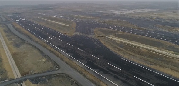 Havadan çekilen görüntülerde Cumhurbaşkanı Erdoğan`ın uçağının test amaçlı olarak 26 Şubat`ta inmesi gündeme gelen pistin çizgilerinin çizildiği ve inişe hazır hale geldiği görülüyor.