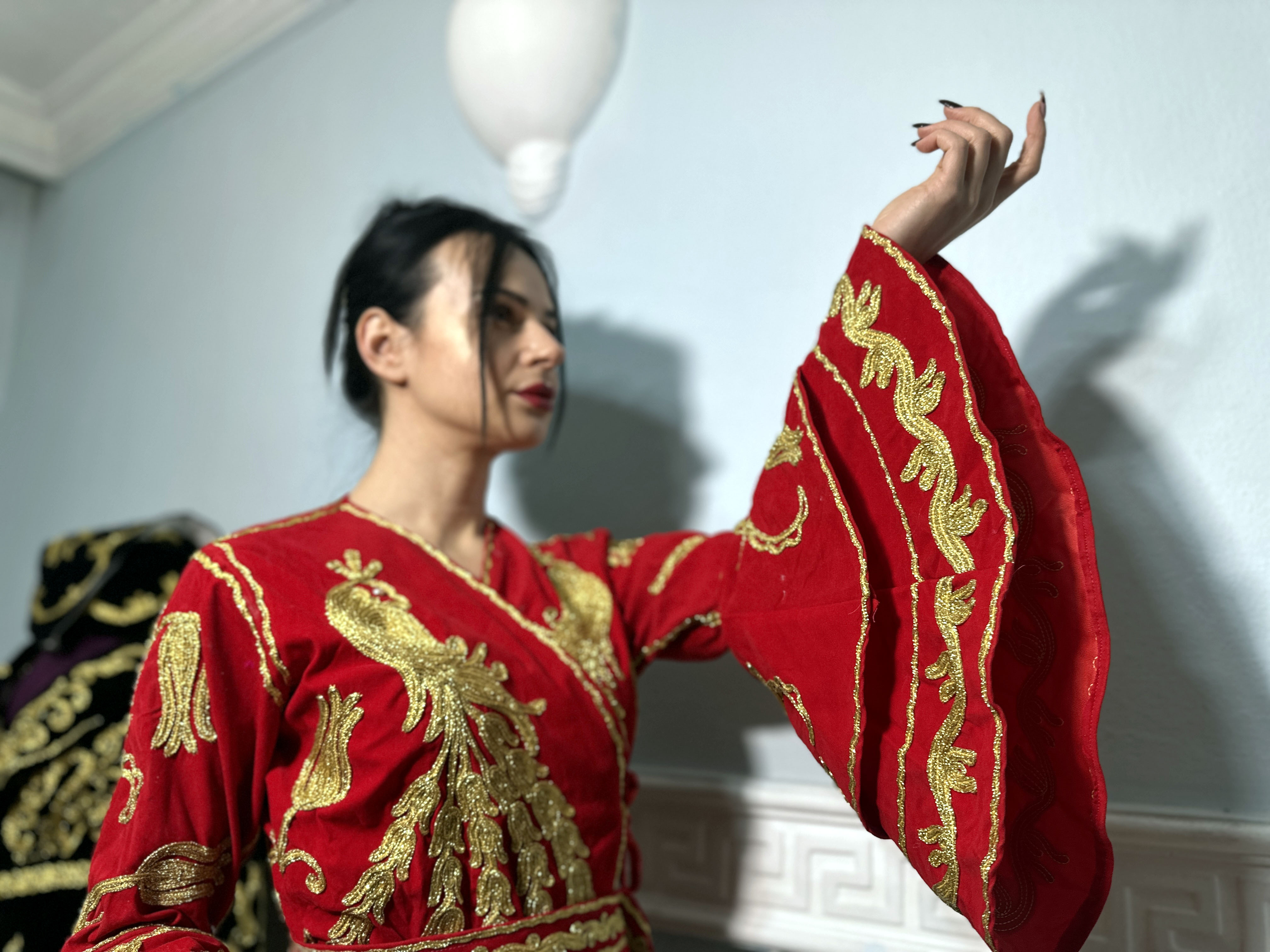“Şu anda bu mesleği öğrenen hiç yok, yetişmiyor. Biz son temsilcileriz. Edirne’de benden başka bu şekilde el yardımıyla yapan da yok. İstanbul, Bursa, bir de daha çok Denizli'de bu makineden vardır ve kadınlar çeyizlerine kendileri yaparlar. Çeyizlerini işlerler, koyarlar. Ama tabii ki eğitim şart. Yani burada bir eğitim alınması gerekiyor. Üretim aşamasındaysa ilk kumaşın rengi tayin ediliyor. Terziler, belirlenen modele göre kesimini hazırlıyorlar. Daha sonrasında kesim bittikten sonra ben de desen tasarımını yapıyorum. İş bittikten sonra tekrardan terziye gidiyor ve giysi bütünleniyor. Bütünledikten sonra gördüğünüz gibi bir model çıkıyor ortaya çıkıyor. El işlemesi, eğer tam gün çalışırsam tam gün çalışırsam yaklaşık 3-4 gün içerisinde bitirmiş oluyorum."