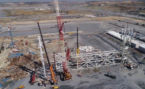 İşçiler çatının orta kısımlarında bulunan cam bölmeleri yerleştirdikleri görülüyor. Havalimanında ikinci kulenin de inşaat çalışmaları devam ederek yükselmeye başladığı görüldü. Ana terminal binasının yanında kalan alanda ise uçakların park pozisyonunda yerleşmeleri için yapılan alanların bittiği görülüyor