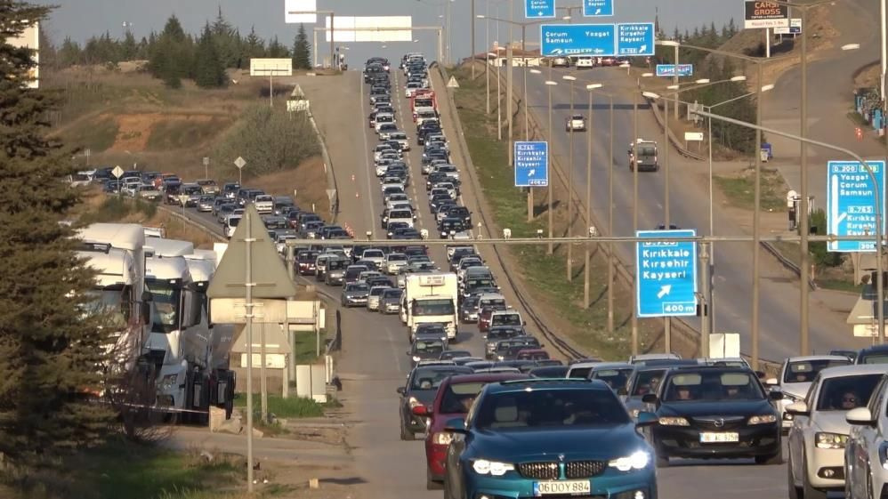 Samsun-Ankara ve Kırıkkale-Kayseri karayollarında yaşanan yoğunluk sebebiyle araçlar tampon tampona ilerledi.
