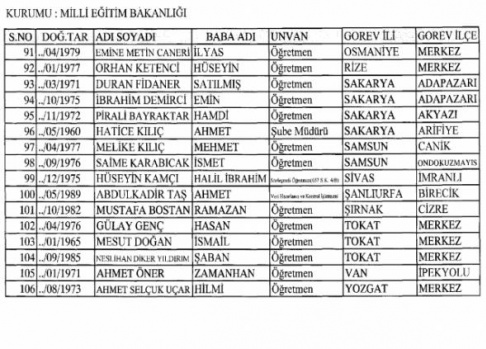 OHAL kapsamında 697 No'lu yeni KHK yayımlandı 262 kişi kamu görevinden ihraç edildi. İşte kamudan ihraç edilenlerin tam listesi...